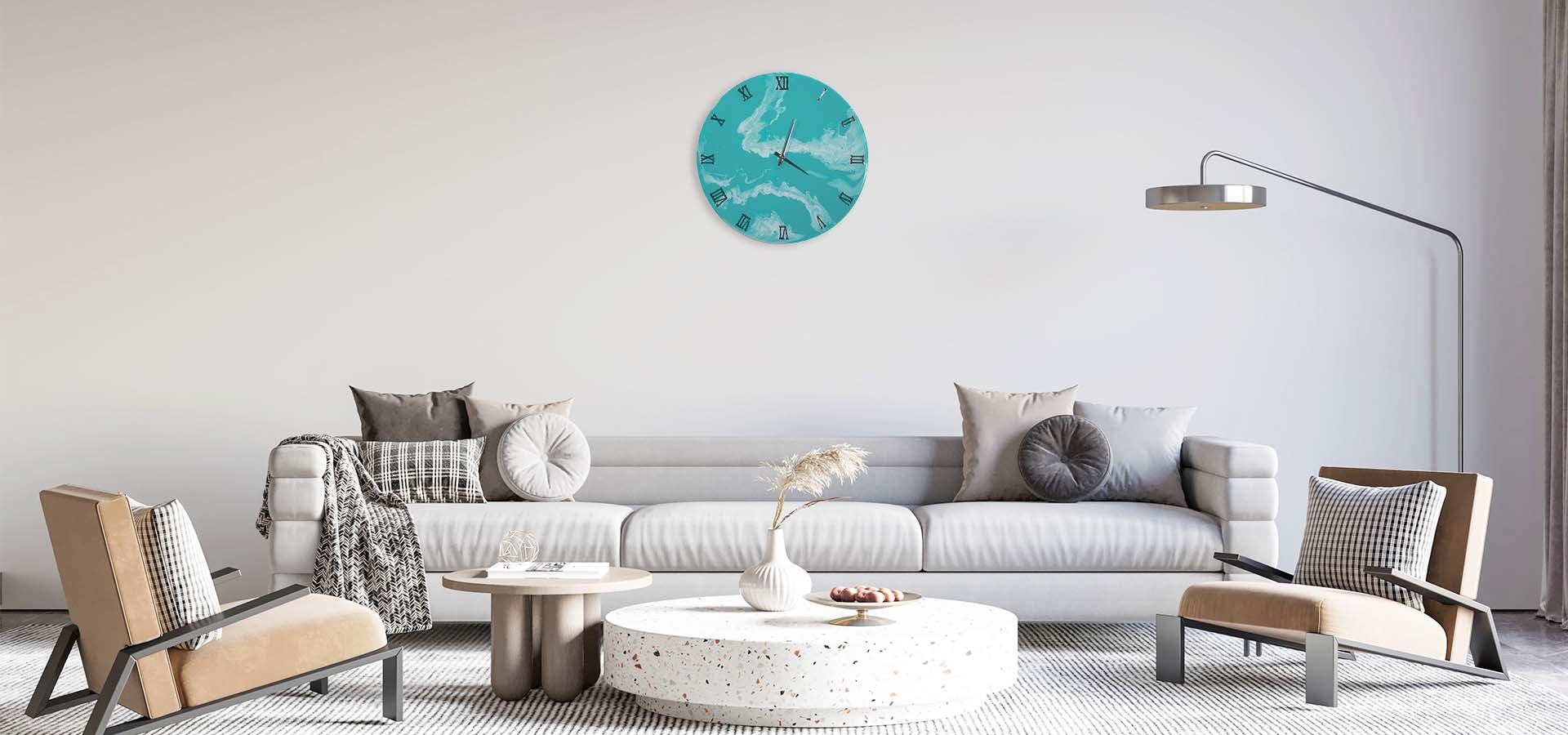 Orologio da Parete in Legno Resina effetto Marmo Azzurro 30 cm di diametro