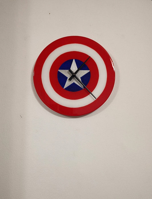 Lavoro su commissione Orologio da Parete in Legno Resina tema Capitan America 30 cm di diametro