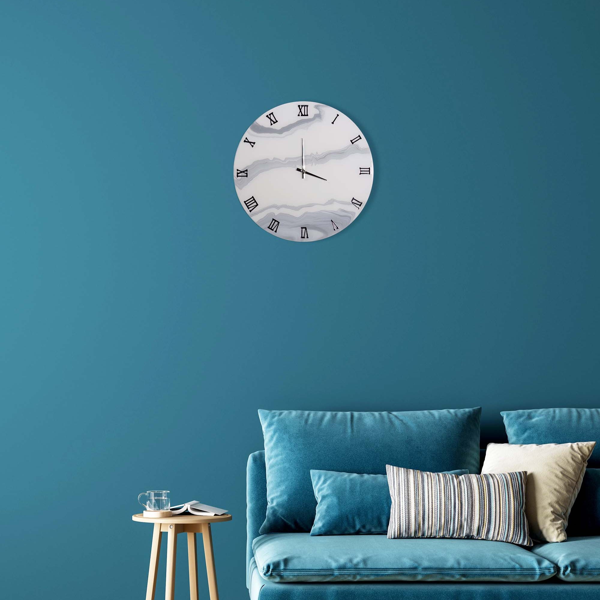 Orologio Da Parete in Legno Resina effetto Marmo Carrara 30 cm di diametro