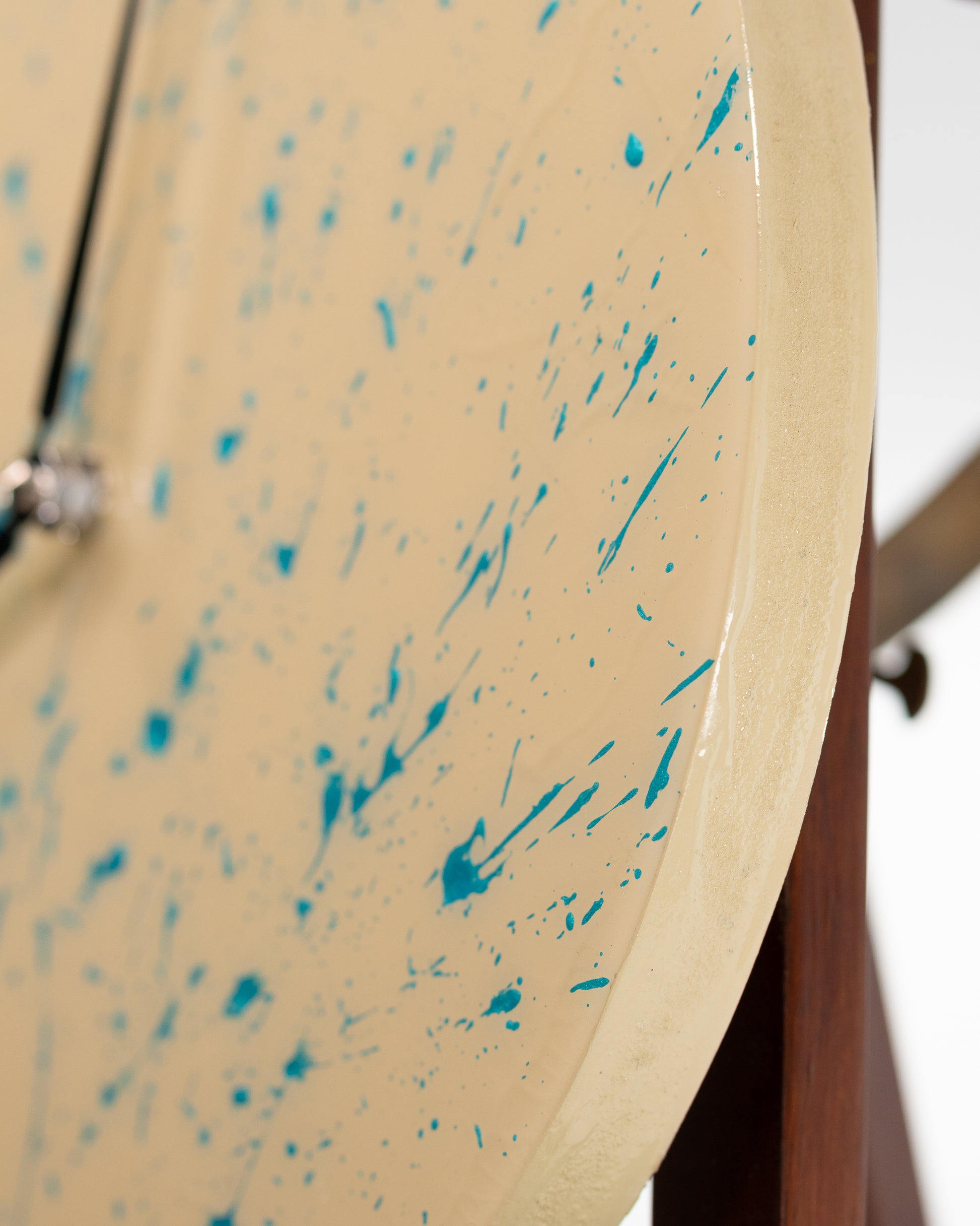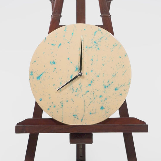 Orologio da Parete in Legno Resina Beige gocce azzurre 30 cm di diametro