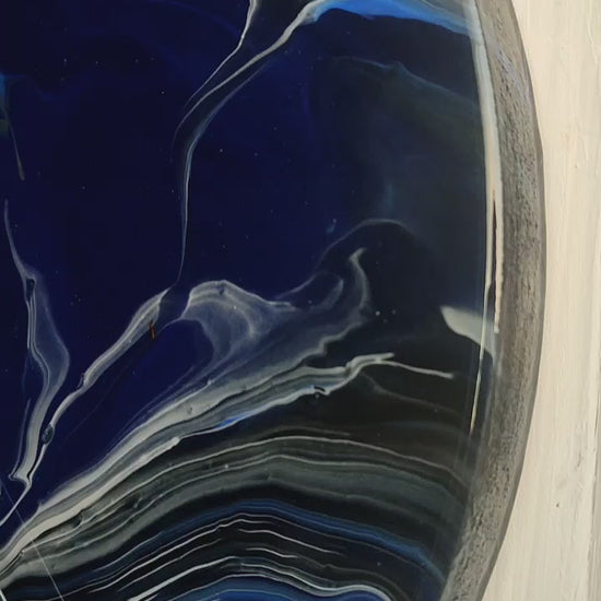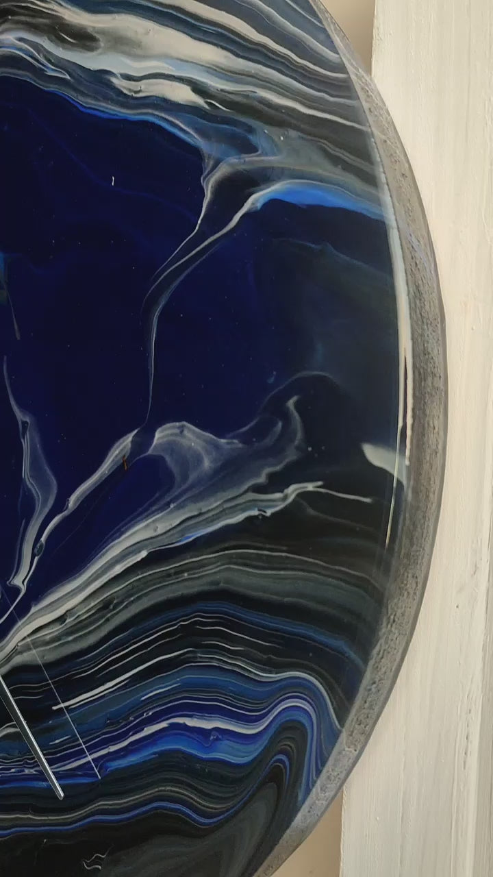 L'orologio da parete in resina epossidica circolare di Avradesign è un oggetto unico di artigianato che coniuga funzione ed estetica.