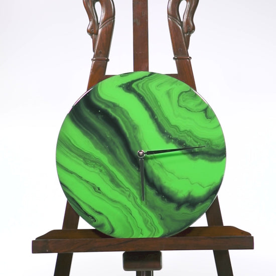 Orologio da Parete in Legno Resina effetto Marmo Verde Base in legno 30 cm di diametro