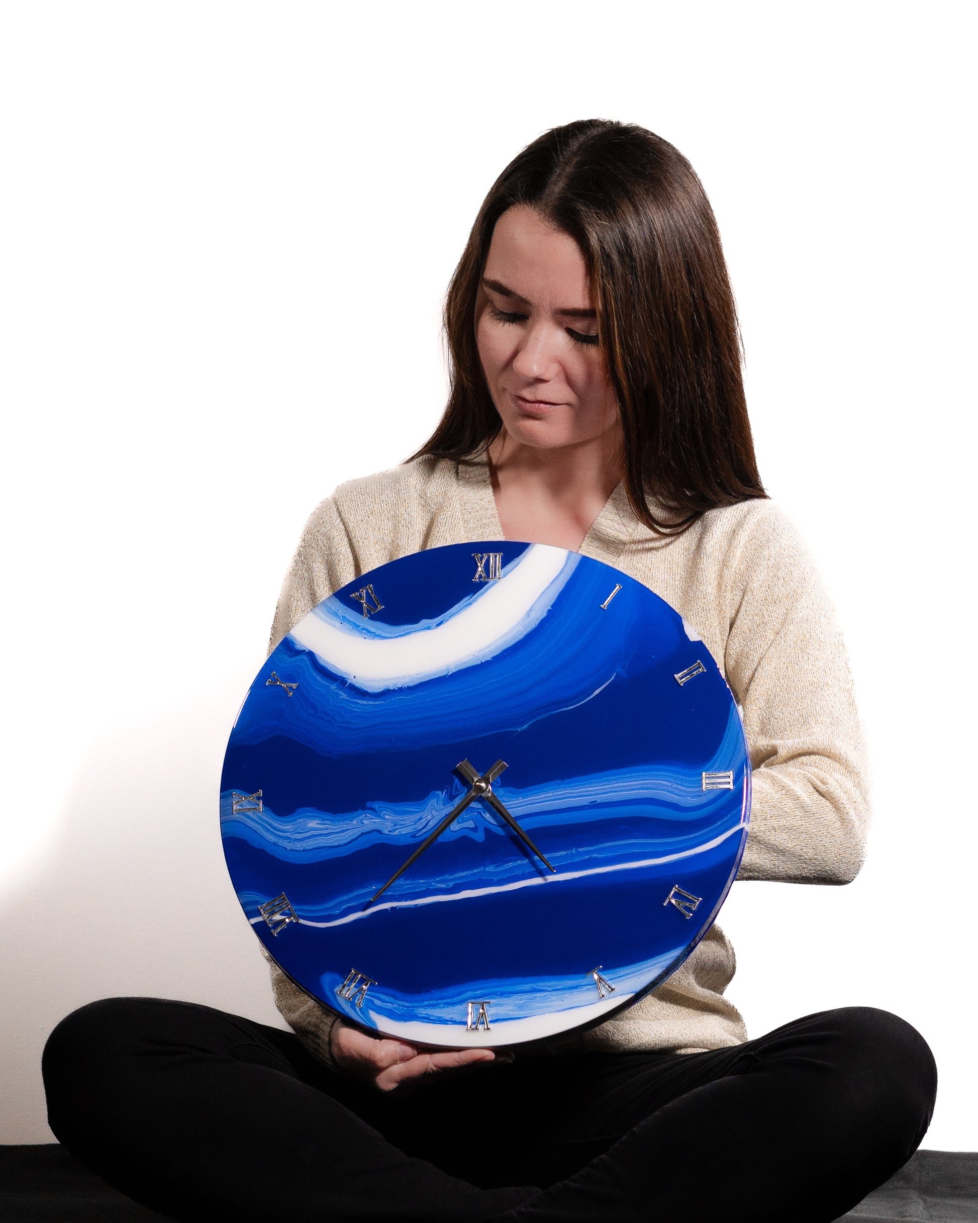 L’orologio da parete in resina epossidica circolare di Avradesign è un oggetto unico di artigianato che coniuga funzione ed estetica.